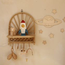 Pas seulement pour les chambres à coucher, la Lampe veilleuse bois fusée spatiale blanc galactique, avec son variateur intégré, apportera une ambiance douce et relaxante dans n'importe quelle pièce de la maison.
